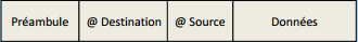 Ensuite il suffit de rajouter un préambule pour reconnaître la trame consitué de 7 octets. C'est ce qui permet de synchroniser les horloges entre le récepteur et l'émetteur.